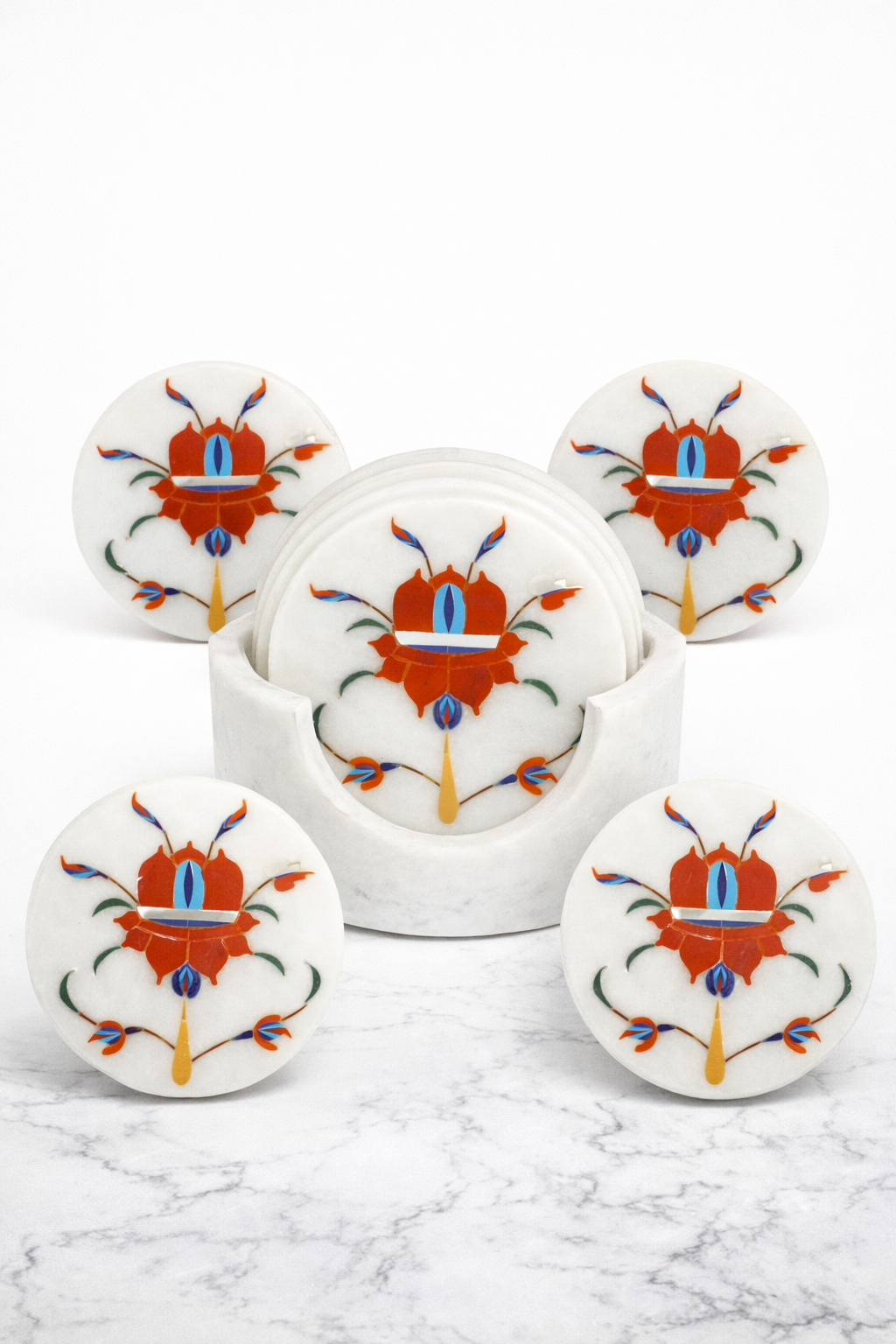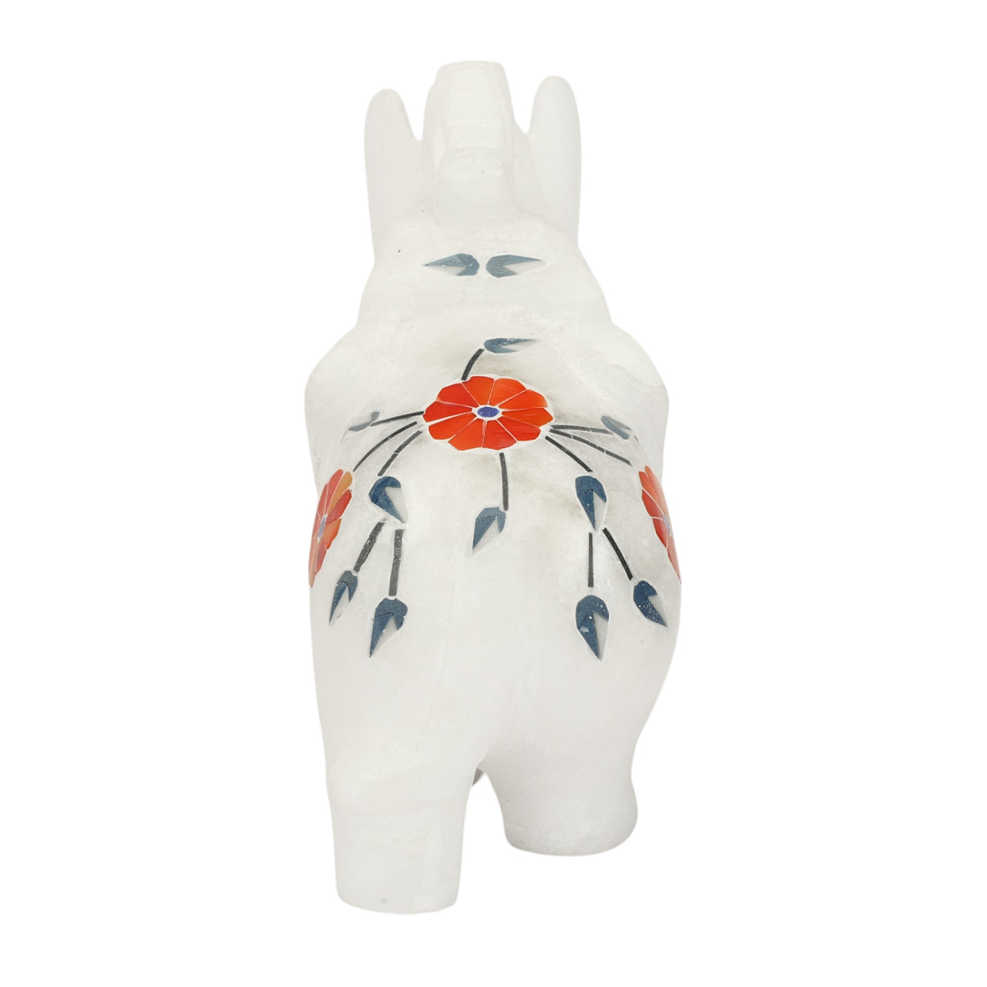 When shaping this marble flower, artisans carved stone and inlaid stories of love using Mother of Pearl, Turquoise, Azurite, Abalone Shell, and Carnelian. Each stone adds light, color, and emotion, turning cold marble into living poetry. Delicate petals and flowing veins are shaped by hand, reflecting purity, peace, depth, shimmer, and passion. Light awakens these gems, allowing the flower to breathe with changing hues. This ancient craft preserves devotion within every curve, proving that beauty and love can be carved into eternity.