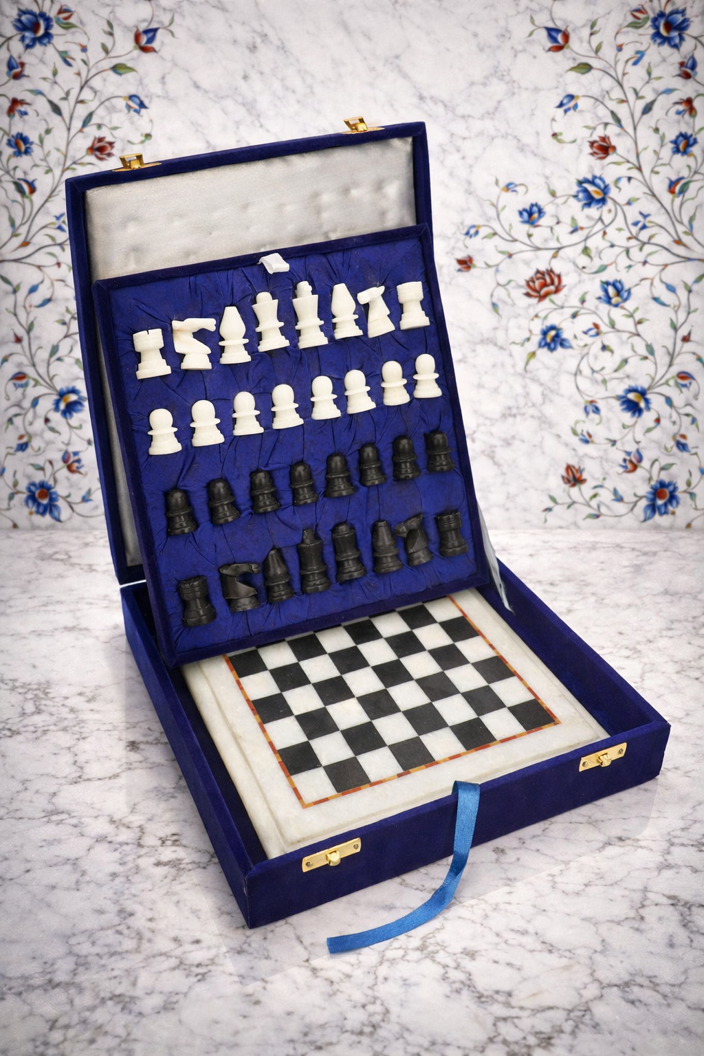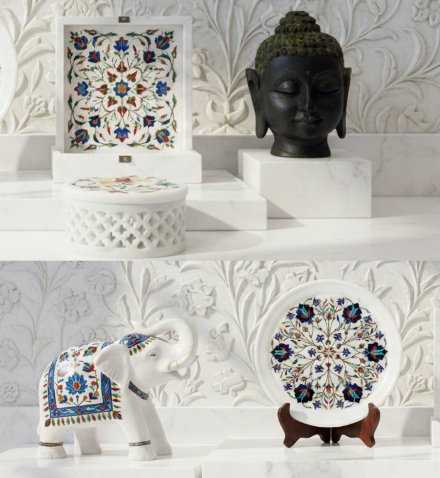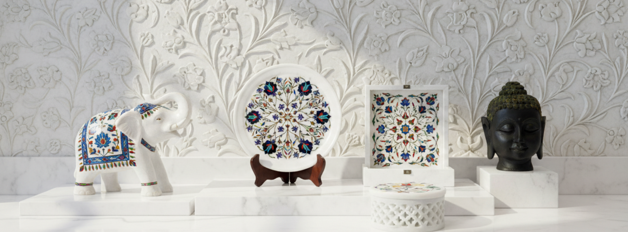 From raw marble to radiant art, this image captures a living tradition in motion. Skilled hands gently carve delicate floral patterns into pure marble, following designs inspired by royal Mughal heritage. Tiny pieces of semi-precious stones are shaped and set into these grooves like jewels finding their home. With careful polishing, dull stone awakens into vibrant color and graceful shine. What begins as a plain surface transforms into a story of patience, precision, and passion — where every curve holds history and every bloom is forever carved in stone.