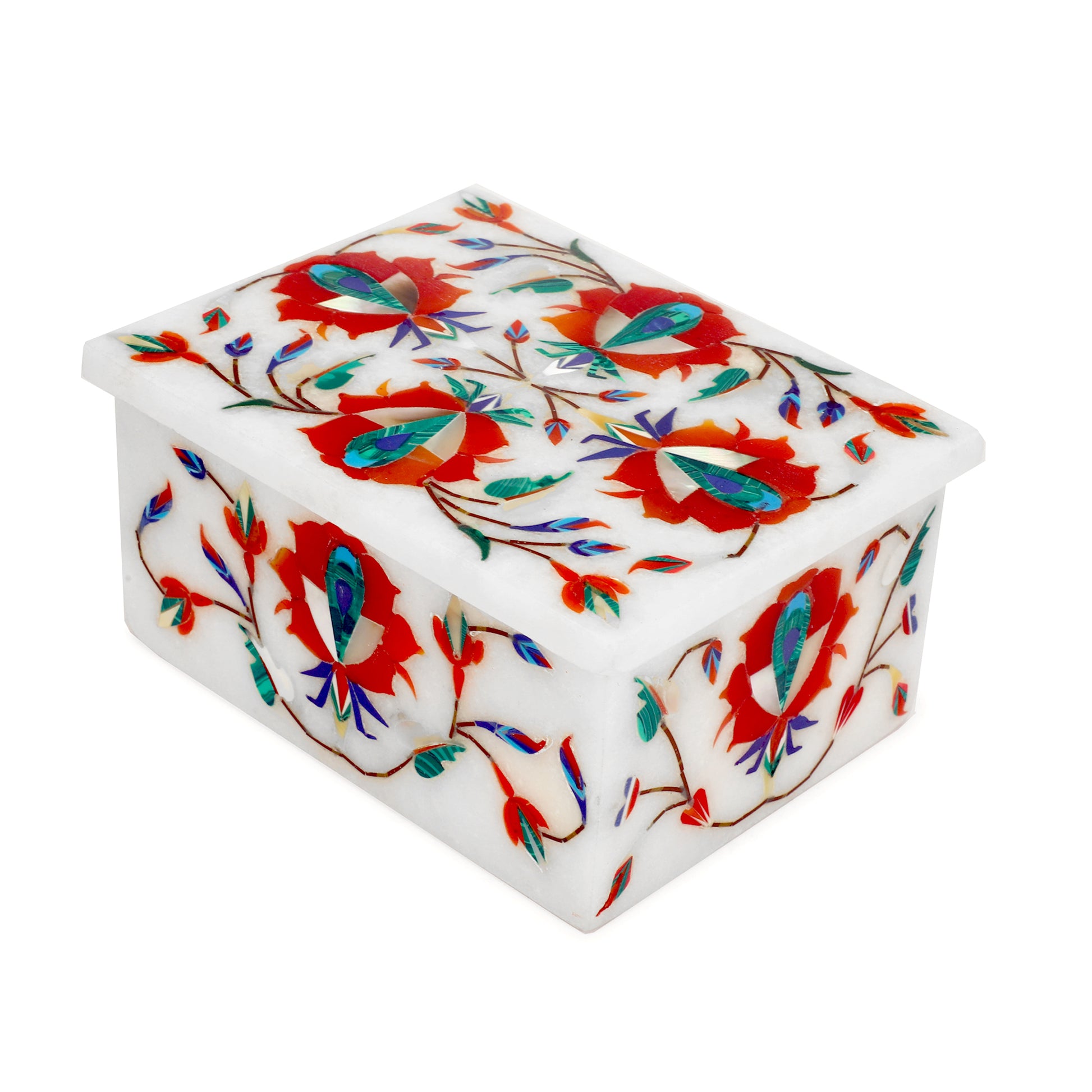 Marble Rectangular Box - Rose Design